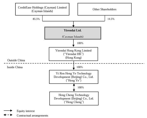 宜人贷平台的运营主体是恒诚科技发展有限公司(下称“恒诚”)。由于我国相关监管部门认定网络内容服务商(Internet Content Provider, ICP)只能是内地企业,而宜人贷在纽交所的上市主体是Yirendai Ltd,其通过一揽子VIE(可变利益实体,Variable Interest Entity,下称“ VIE”)协议控制恒诚,能对恒诚施以有效控制并获取其经济利益。