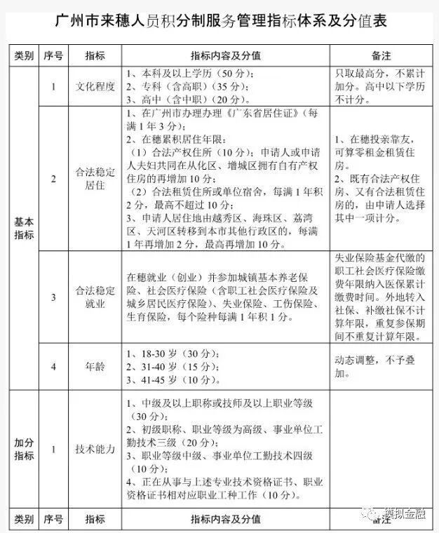 附:广州市来穗人员积分制服务管理指标体系及分值表((征求意见稿))