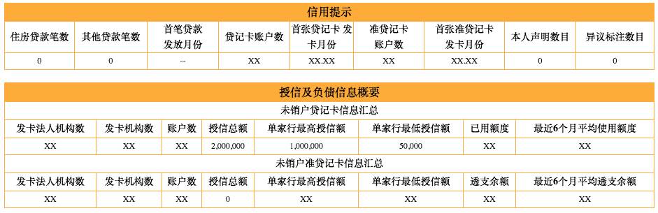 发张老图,银行版本的个人信用报告上能看到这些信息: