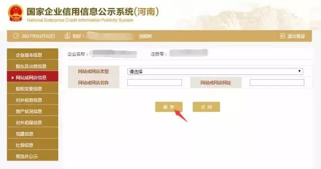 第五步:填写基本信息。需要填报的通信地址、邮政编码、联系电话、电子邮箱、存续状态、网址、网站信息均为报送时的信息,其余信息为所报告年度12月31日的信息。如果有网站或网店就点“是否有网站或网店”后面的“是”字前的圆点,如果没有网站或网店就点“否”字前的圆点。填写完后点“保存”。
