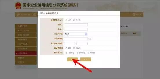 第十步:填写对外担保信息。点击左边的对外担保信息,根据实际情况进行添加之后点击“保存”。