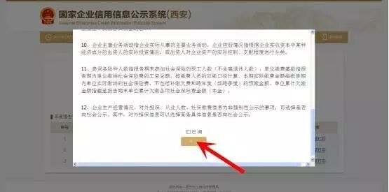 弹出年报须知,阅读后,在下方“已阅”前的小框内“∨”(对勾),再点确认。如果以前存在没有参加年报的年度,先需要将以前年度补报后才可申报本年度的。