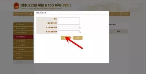 第七步:填写股权变更信息,点击左边的“股权变更信息”,之后再点击“保存”