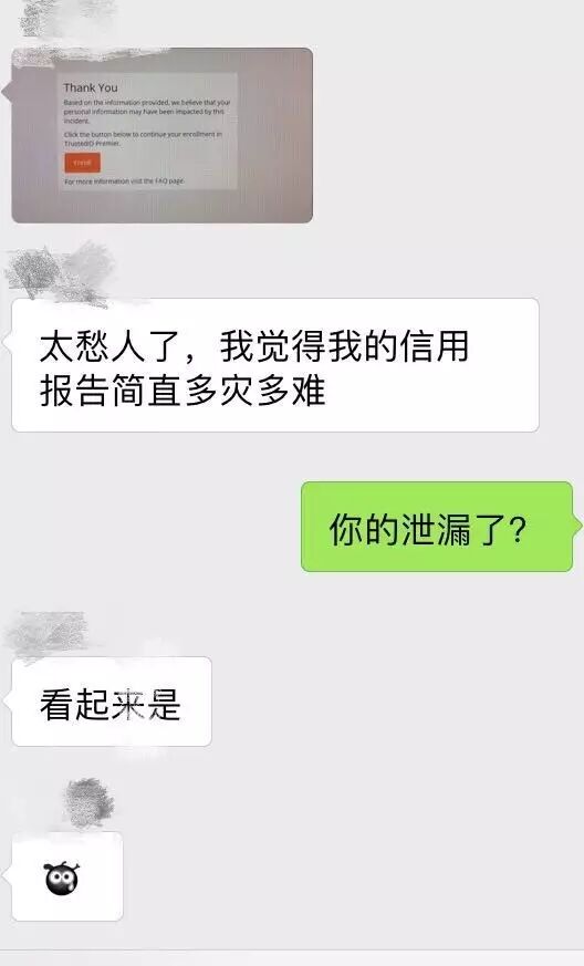 Equifax掌握着你所有的个人信息和信用记录,一旦被泄,被盗刷信用卡还是最轻的,就怕有人用你的信息去贷款买房买车,最后让你还贷......而且一旦留下不良记录,你自己申请贷款、办信用卡、买房买车、租房等等就都不行了......