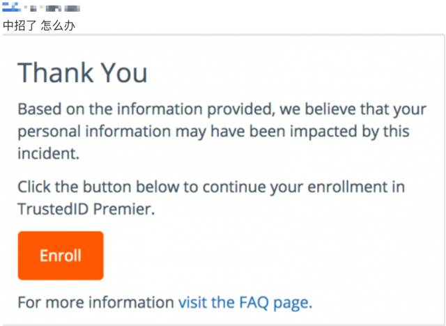 告诉你可能受到了影响,那么建议按照Equifax的提示完成注册;