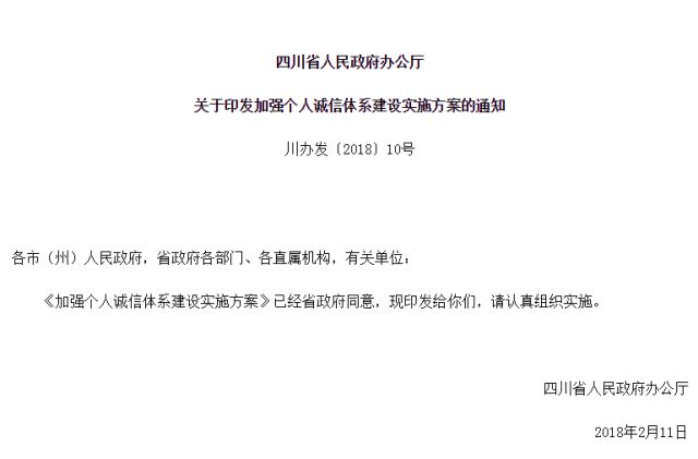 根据《方案》,我省将建立覆盖全省所有户籍人口及非川籍外来人口的省个人公共信用信息基础数据库,2018年底前,实现与省社会信用信息平台无缝对接、信息共享。