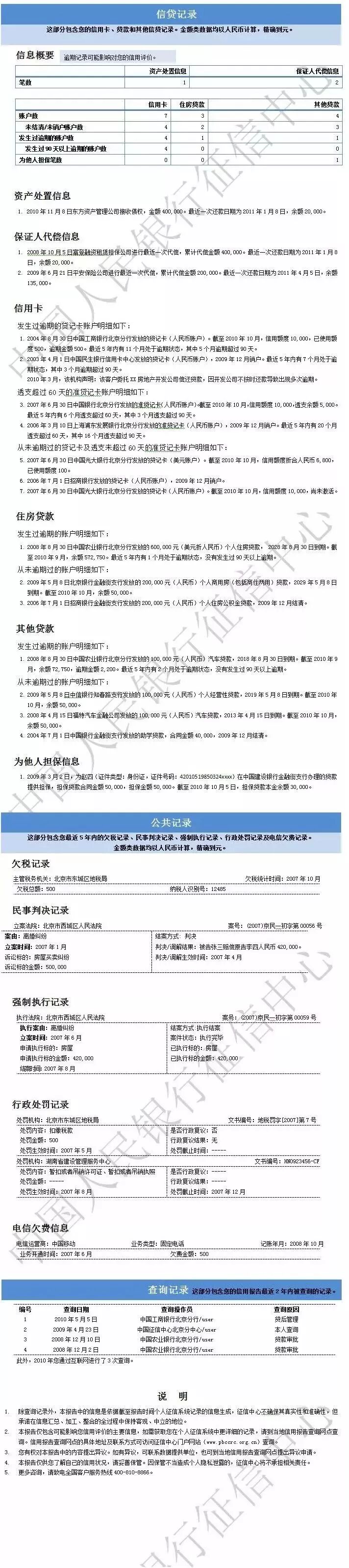 1、信息主体在借贷、赊购、担保、租赁、保险、使用信用卡等活动中未按照合同履行义务的信息。