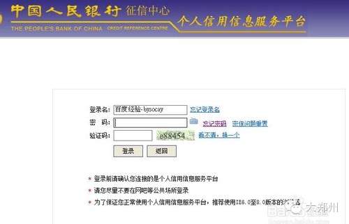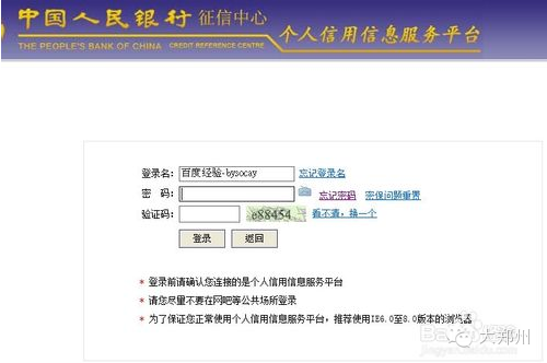 登陆中国人民银行征信中心个人信用信息服务平台的官方网站 https://ipcrs.pbccrc.org.cn 输入帐号\密码\验证码 登陆