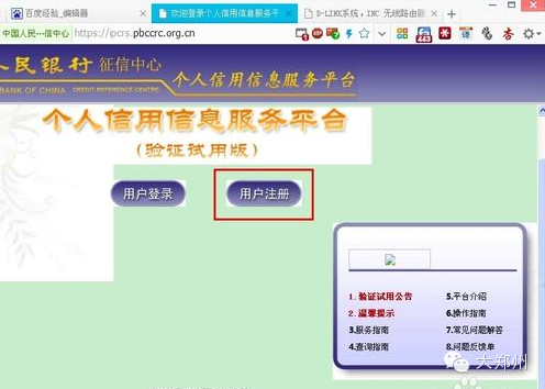打开 中国人民银行征信中心个人信用信息服务平台的官方网站 https://ipcrs.pbccrc.org.cn 点击用户注册