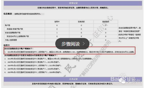 下面是信用报告样板,比如小编有一次信用卡到期了没有及时还款被记下了。。。。