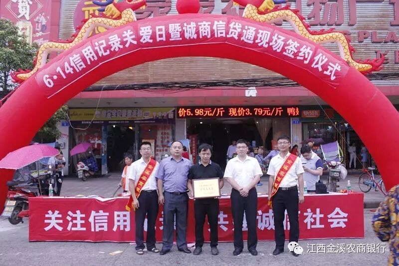 为了提高社会公众信用意识、完善社会信用体系建设,在614信用记录关爱日,金溪农商银行携手中国人民银行金溪县支行开展“关注信用记录 共建诚信社会”征信宣传暨诚商信贷通现场签约仪式,全面系统地普及征信知识,引导公众准确认识征信、使用征信,宣传诚商信贷通等信贷产品。
