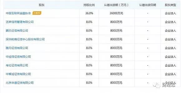 资料显示,百行征信注册地为广东省深圳市,此,其营业场所为广东省深圳市福田区深南大道1006号深圳国际创新中心。业务范围为个人征信业务,注册资本为人民币10亿元。最大股东为中国互联网金融协会,持股36%,其他8家各持股8%,股权结构:中国互联网金融协会持股36%,芝麻信用管理有限公司持股8%,腾讯征信有限公司持股8%,深圳前海征信中心股份有限公司持股8%,鹏元征信有限公司持股8%,中诚信征信有限公司持股8%,考拉征信有限公司持股8%,中智诚征信有限公司持股8%,北京华道征信有限公司持股8%。