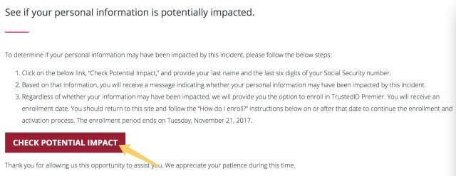 消费者可以通过提交姓氏和社会安全号的后六位来查询自己是否受到影响。Equifax也将寄送文件给那些受到影响的客户。