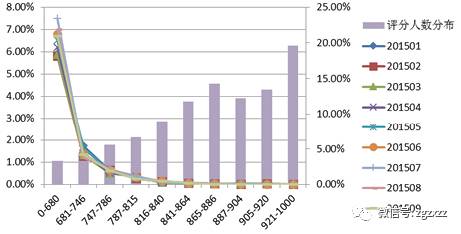 从图5显示了”数字解读”在我行消费信贷贷后上的表现,风险的排序能力以及识别“坏”客户的表现也很稳定。
