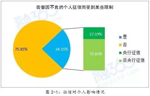 1.有24.15%用户曾因不良个人征信在某些方面受到限制