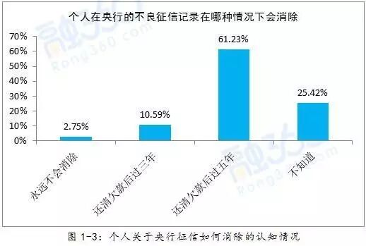 如果出现连续3次或累计6次的信用卡(或贷款)逾期就会被认定为信用记录不良,一般情况下,在还清逾期欠款后,个人在央行的该不良信用记录五年后会被新的记录所覆盖。但实际调查显示,39.77%的用户不知道如何“消除”不良信用记录,这些用户对个人在央行的个人征信缺乏正确的“经营”意识。