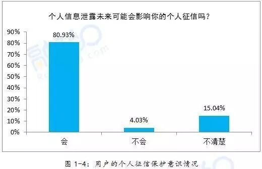但调查显示,接近20%用户不知道个人信息泄露可能会影响个人征信。